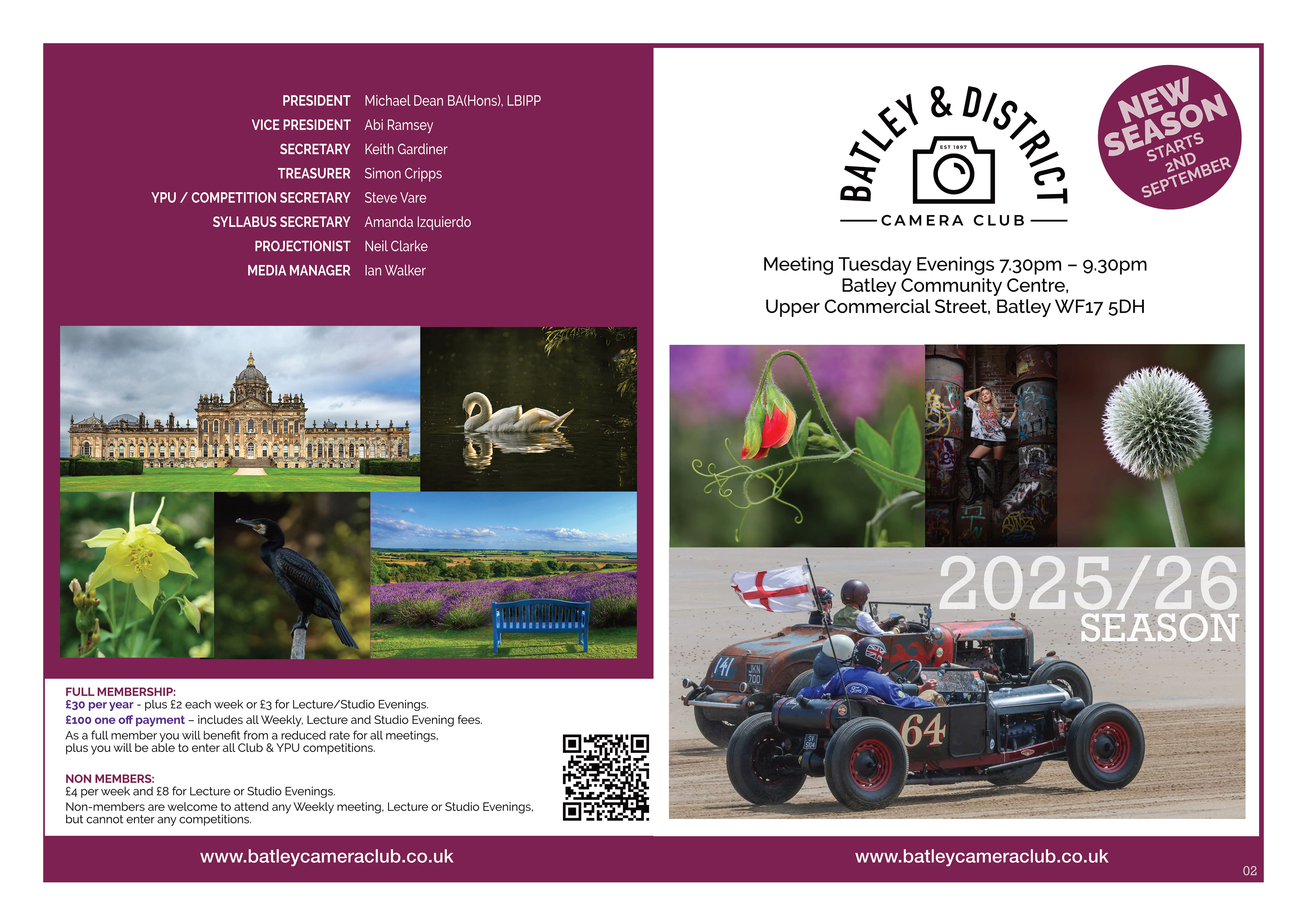 Batley Camera Club are always happy to welcome new members, no matter your photography skill level. Our current members are happy to help beginners on their photography journey, and more experienced photographers are welcome to join us and share their knowledge, enjoy our workshops and enter competitions.